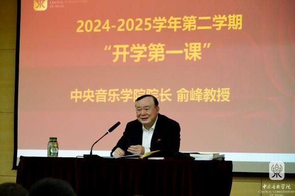 2025年3月20日下午,俞峰院长以“乐者之心怀天下,德艺双馨报国家”为主题,在701演奏厅为近150名大一年级学生讲授“开学第一课”。