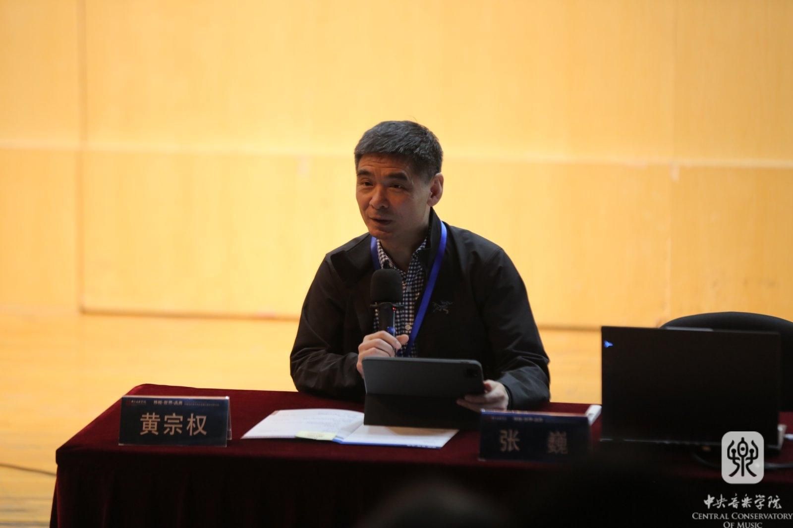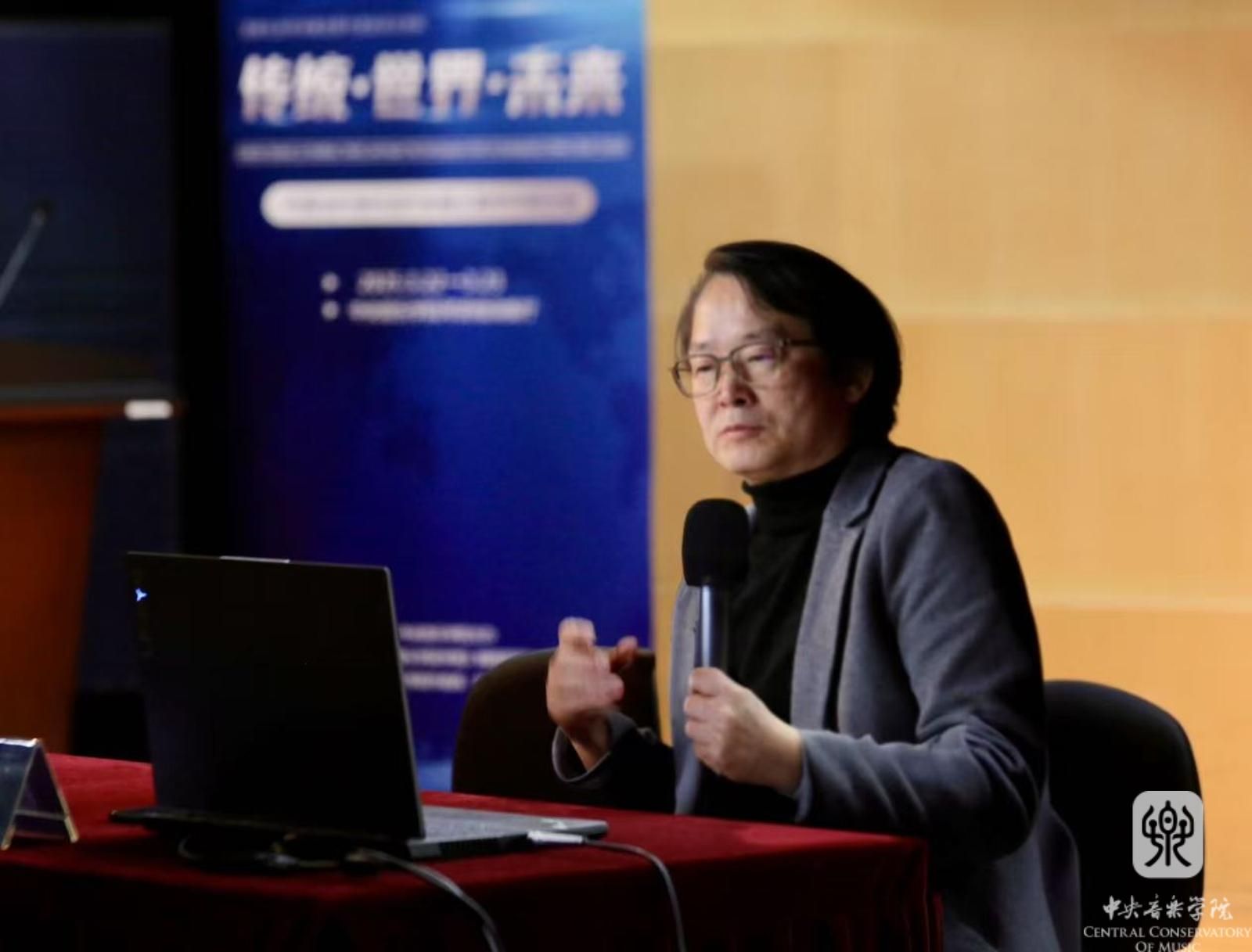 在主题发言环节,beat365官方网站副院长秦文琛教授的发言《传统音乐对我创作的影响》,中国音乐家协会副主席、哈尔滨音乐学院、上海音乐学院杨燕迪教授的发言《20世纪音乐的另类叙事可能——兼谈对中国当前音乐创作发展的启示》,上海音乐学院张巍教授的发言《音乐理论研究的四个转向》,分别从音乐创作、音乐史研究、作曲技术理论三个学科领域的视角,回应了本次会议的主题,并分享了富有启发性的研究成果。秦文琛副院长从自己的创作中列举出“传统乐器的音响品质及演奏法”“腔化特征”“传统音乐的音响形态”“美学借鉴”四种传统音乐的观照途径,并以《众神之光》《伶伦作乐图》两部作品为例,通过对比原生态音乐的音响,从作品的技术角度详析了其受“传统音乐的音响形态”影响的因素。杨燕迪教授的发言立足于当前的大势与基于中国立场对20世纪以来西方音乐的批判性反思,对20世纪音乐的“正统”撰史叙事原则进行了回顾与批判,提出“音乐价值评判的标准究竟为何,可以讨论。但不可忽视的重要尺度是‘个性风格’的形成和塑造,而不是语言新旧的衡量”。同时,他提出20世纪音乐发展的另类叙事设想,并指出了对当前中国音乐创作的启示和借鉴意义。张巍教授从自身数十年的研究实践、教学实践与教学管理经验出发,提出音乐理论从学科层面应该实现从分散化、单一化向交融化、系统化转型;从研究层面要从表层研究向深层研究转向,从逐渐边缘化、可有可无的状态向核心的、不可或缺的状态转向;从自我封闭的独白系统走向多元主体的交叉系统,从音乐理论的研究向为表演服务的研究转向。