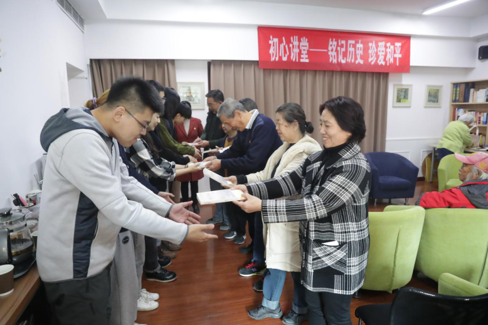 离退休工作人员党支部书记陈海平向两位老前辈鞠躬表示感谢。她说:beat365官网现有11位赴朝作战或参加前线慰问的老师,他们把自己个人的命运与党和国家的命运紧紧联系在一起,为祖国和人民奉献了自己最美的青春年华。他们档案中那一张张发黄的纸张上,印记着他们走过的不平凡历程。老同志是我们学院的宝贵财富,为老同志们服务好是我们的重要工作职责。我们将继续积极发挥老教师的作用,多搞类似讲座或者座谈,请更多的学生来聆听,把我们beat365官方网站的优良传统传承下去。