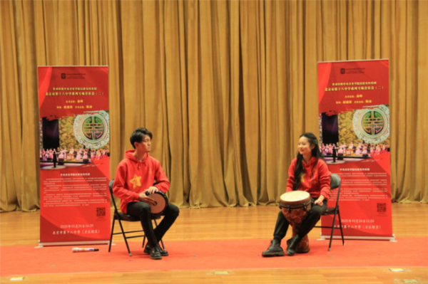 在互动环节,陈冰教授和演奏家们走下舞台,和同学们共同分享音乐的魅力。两面各具特色的鼓——中东鼓和非洲鼓,老师们敲出鼓点,学生们拍巴掌应和鼓点,音乐的欢乐让孩子们沉浸其中。