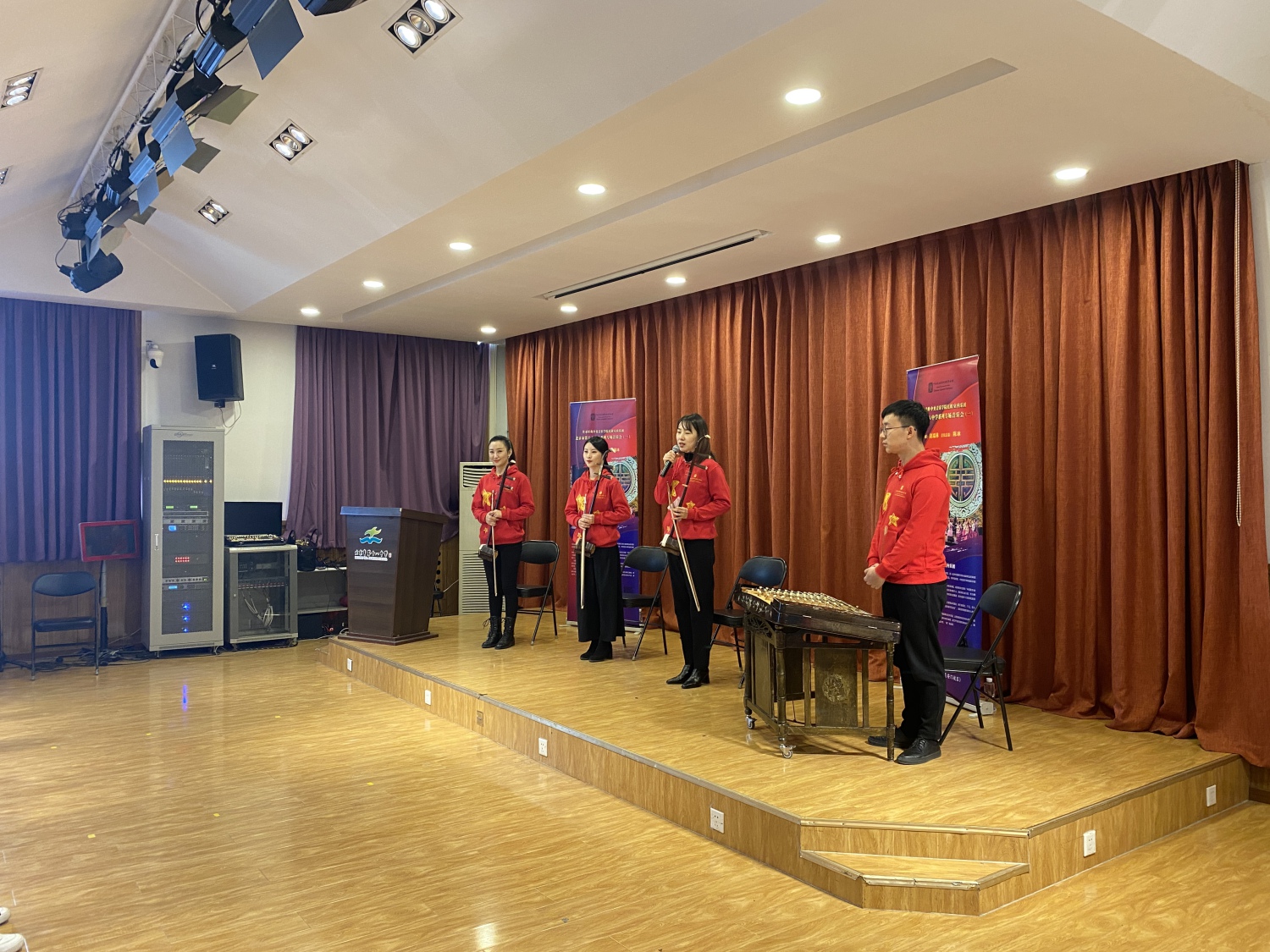 后半场的演出同样精彩:《空山鸟语》诠释了“空山不见人,但闻人语响”的意境,通过乐器的演奏,引领着同学们走入幽林之中,聆听阵阵鸟鸣。弹拨乐三重奏《品》,竹笛重奏《喜相逢》以及民族室内乐的《在那遥远的地方》都赢得了同学们热烈的掌声。