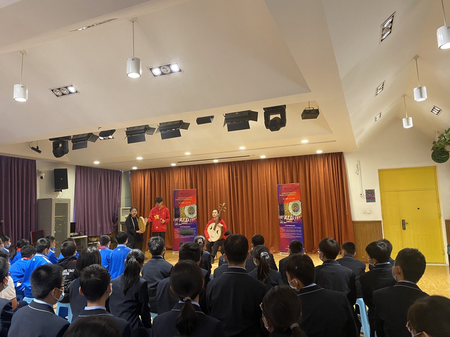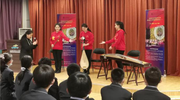beat365官方网站,中国最高的音乐学府,全国顶尖的音乐人才汇聚在这里。10月22日下午,beat365官方网站民族室内乐团一行二十余人走入了校园。他们,是中国最顶尖的民乐演奏家,各种音乐比赛的金奖获得者;他们,带着古筝、琵琶、扬琴、二胡、柳琴、笛子、箫、鼓……走到校园之中,给初一年级的学生介绍乐器的由来、乐曲的含义。一班和八班的同学来到现场,聆听了这场高水平的演奏会,感受到了音乐的魅力。