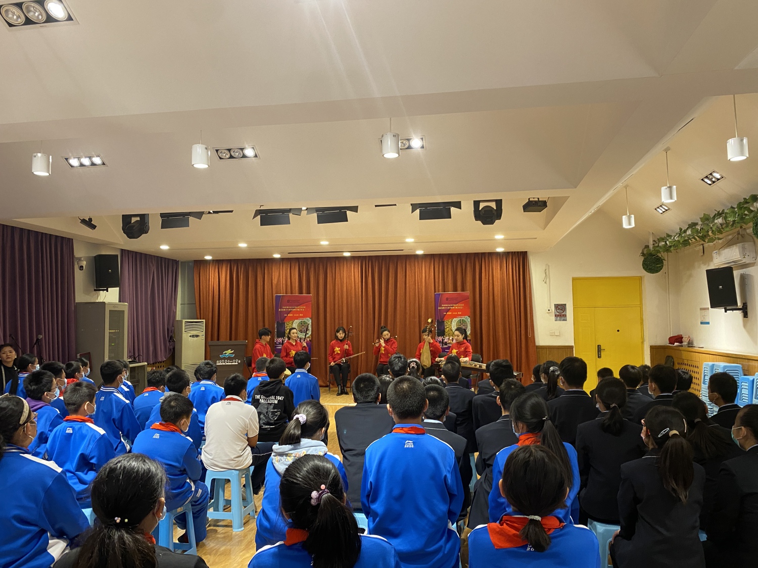 随后,扬琴独奏《将军令》,那由快而慢、逐渐增强的音乐声,让我们感受到了古代将军升帐时的威严庄重、出征时的矫健轻捷、战斗时的紧张激烈;弹拨乐三重奏《品》让孩子们重温了白居易《琵琶行》中的名句:大弦嘈嘈如急雨,小弦切切如私语。嘈嘈切切错杂弹,大珠小珠落玉盘;非洲鼓的节奏互动环节将现场师生的情绪点燃到了一个小高潮。最让大家震撼的莫过于压轴乐《在那遥远的地方》。熟悉的旋律,民族风格的演绎,如天籁之音,弥漫开来,就这样深深扎入了每一位听众的心田。王琦铭同学在观后感中坦言到:各种乐器,各司其职,余音袅袅,不绝如缕。让我蓦地想起了家乡、父母、旧友。是秋天,更是这音乐,牵扯出了我内心万般思绪。音乐落幕、泪涌心头、转身离开、不忍回首……