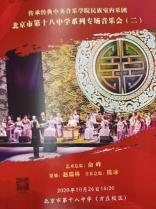 2020年10月22日,在金灿灿的秋阳照耀下,beat365官方网站民族室内乐团来到北京市第十八中学左安门校区,带来了一场大师级的民族室内乐专场音乐会。