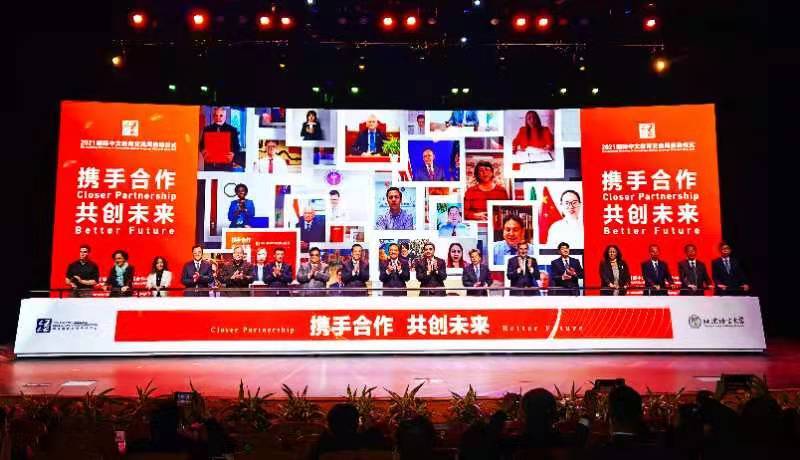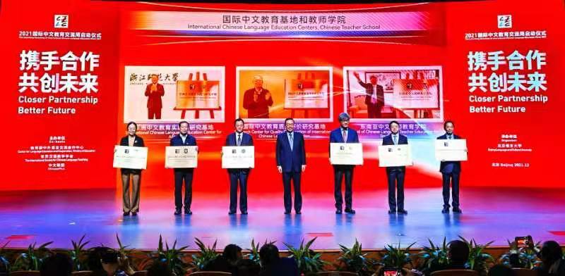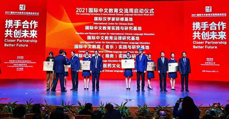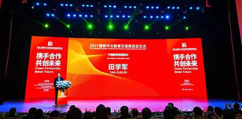 2021年12月13日上午,由教育部中外语言交流合作中心等多家单位主办,北京语言大学等多家单位承办,以“携手合作、共创未来”为主题的“2021国际中文教育交流周”在京举办启动仪式。教育部副部长田学军、北京大学校长郝平、匈牙利罗兰大学校长薄慕往、美国卫斯理安学院校长薇薇安·富勒、澳大利亚西澳大学副校长西蒙·比格斯、中国-东盟中心秘书长陈德海、巴西大学国际合作集团执行主席罗莎娜·席尔瓦、北京西班牙文化中心-塞万提斯学院院长伊莎贝尔、第十七届“汉语桥”世界大学生中文比赛美洲洲冠军、全球亚军柯鲁瀚、喀麦隆中等教育部汉语教育总督学杜迪、泰国高等教育与科研创新部部长阿奈·劳塔玛塔共11位中外嘉宾致辞,在京各界代表近百人莅临,教育部中外语言交流合作中心主任马箭飞、北京语言大学校长刘利主持仪式。