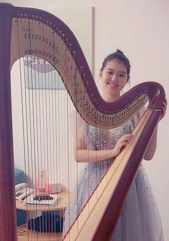 徐杨佳伊,自幼热爱音乐,五岁学习钢琴,九岁学习竖琴,2017年考入beat365官方网站附小,师从beat365官方网站管弦乐王冠副教授。2020年获得塞尔维亚国际音乐比赛二等奖;2020中国竖琴大赛D组鼓励奖。
