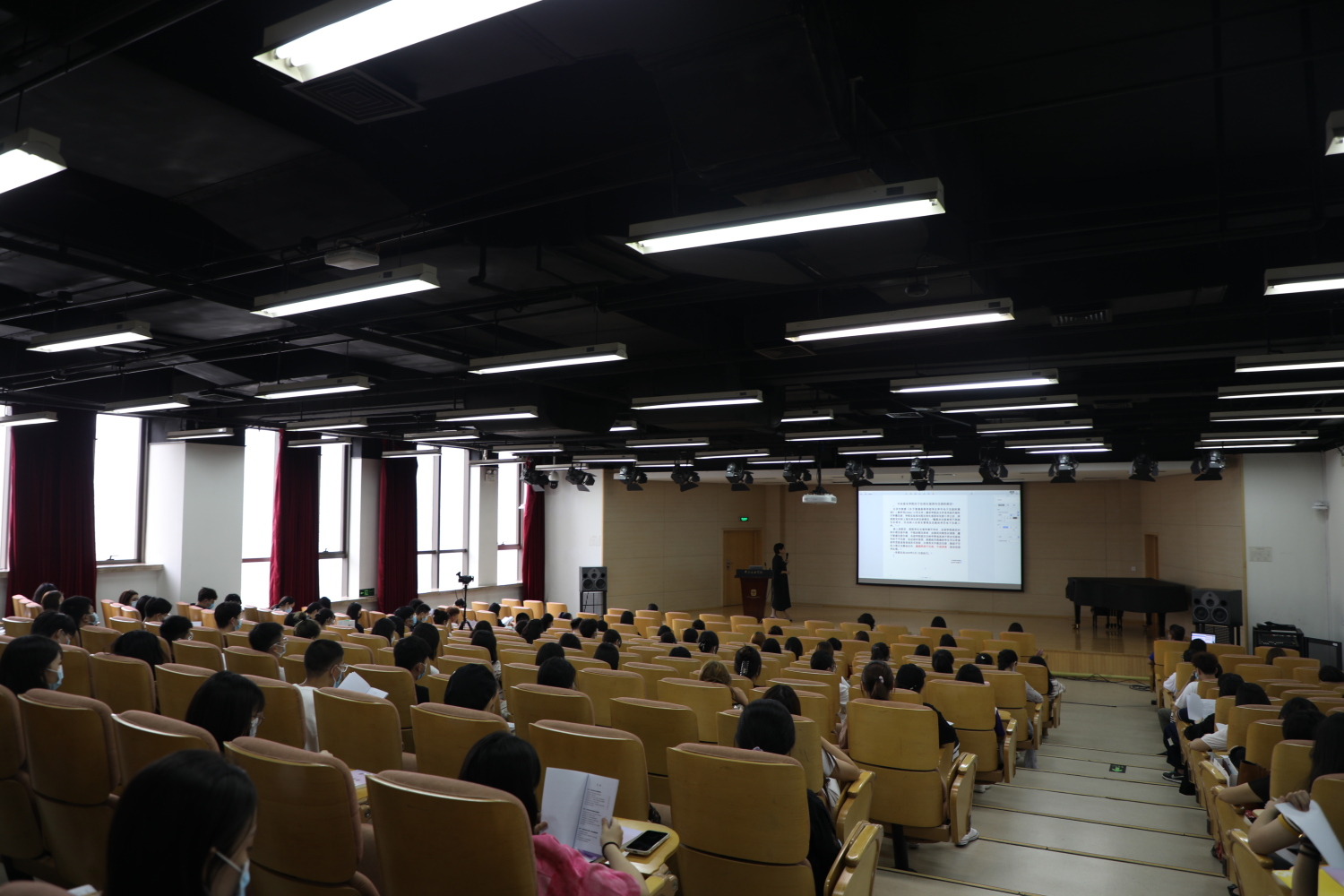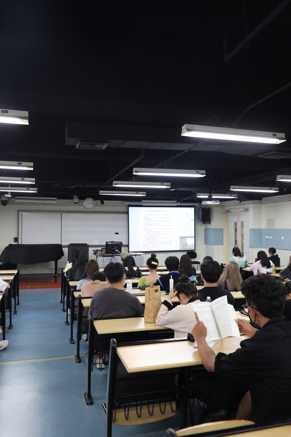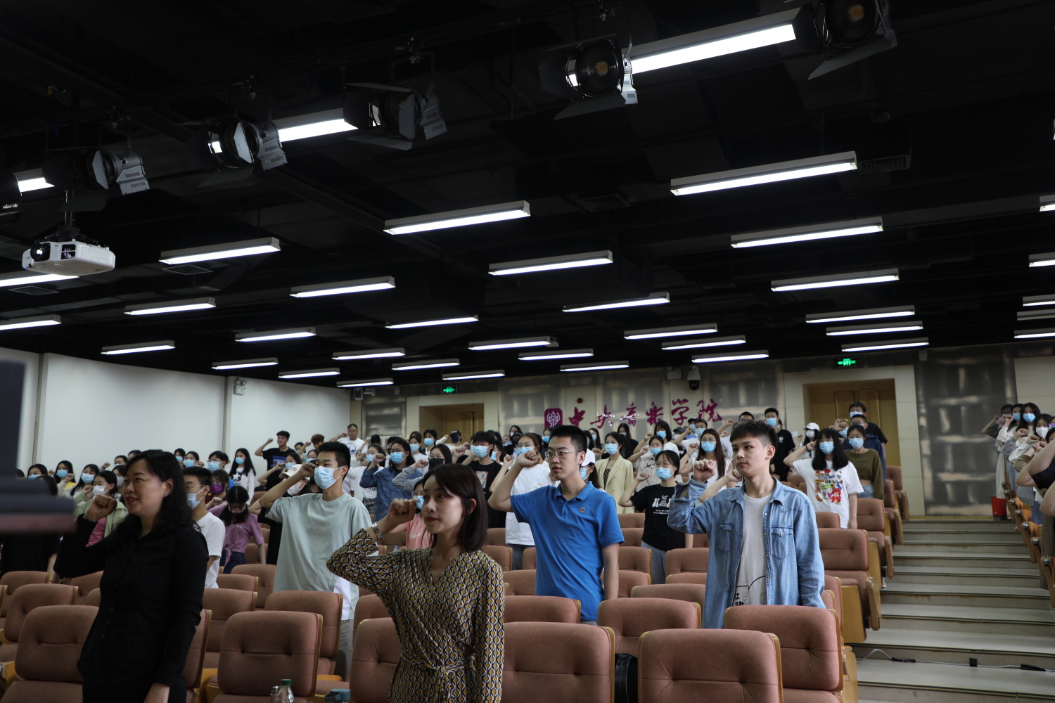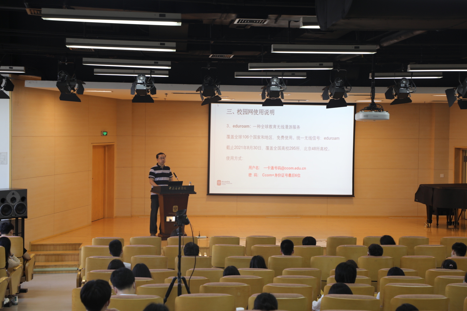 为保证疫情防控安全,本次新生教育活动设一个主会场、八个分会场,并通过“央音视频”平台进行全程网络直播。同学们间隔而坐,戴好口罩共同学习和聆听。
