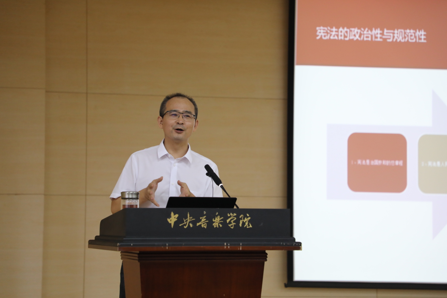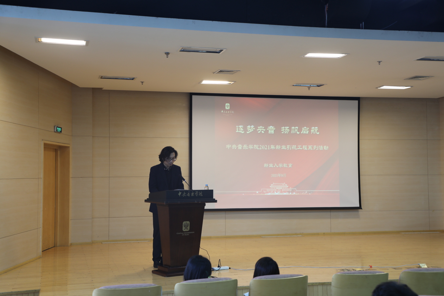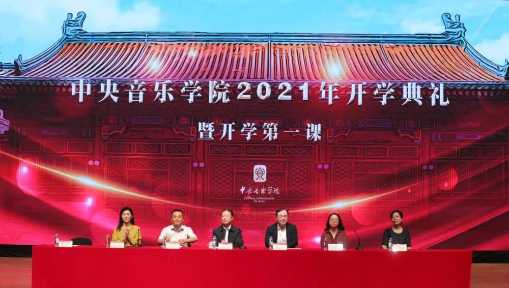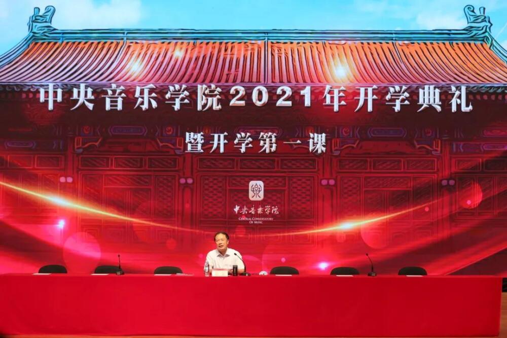 校党委书记赵旻、校长俞峰为2021级全体新生现场讲授开学第一课。赵旻书记从选择攻读艺术专业意味着什么、怎样看待大学生的使命和责任、提升大学生的政治判断力三个角度为新生讲授,并结合当前形势为2021级新生强调了学校疫情防控要求。俞峰校长以“点亮音乐人生”为题,结合党史、校史和音乐史,从音乐的价值、音乐人的时代使命、“央音人”的时代传承出发,为央音新生指引前进方向、明确奋斗目标。