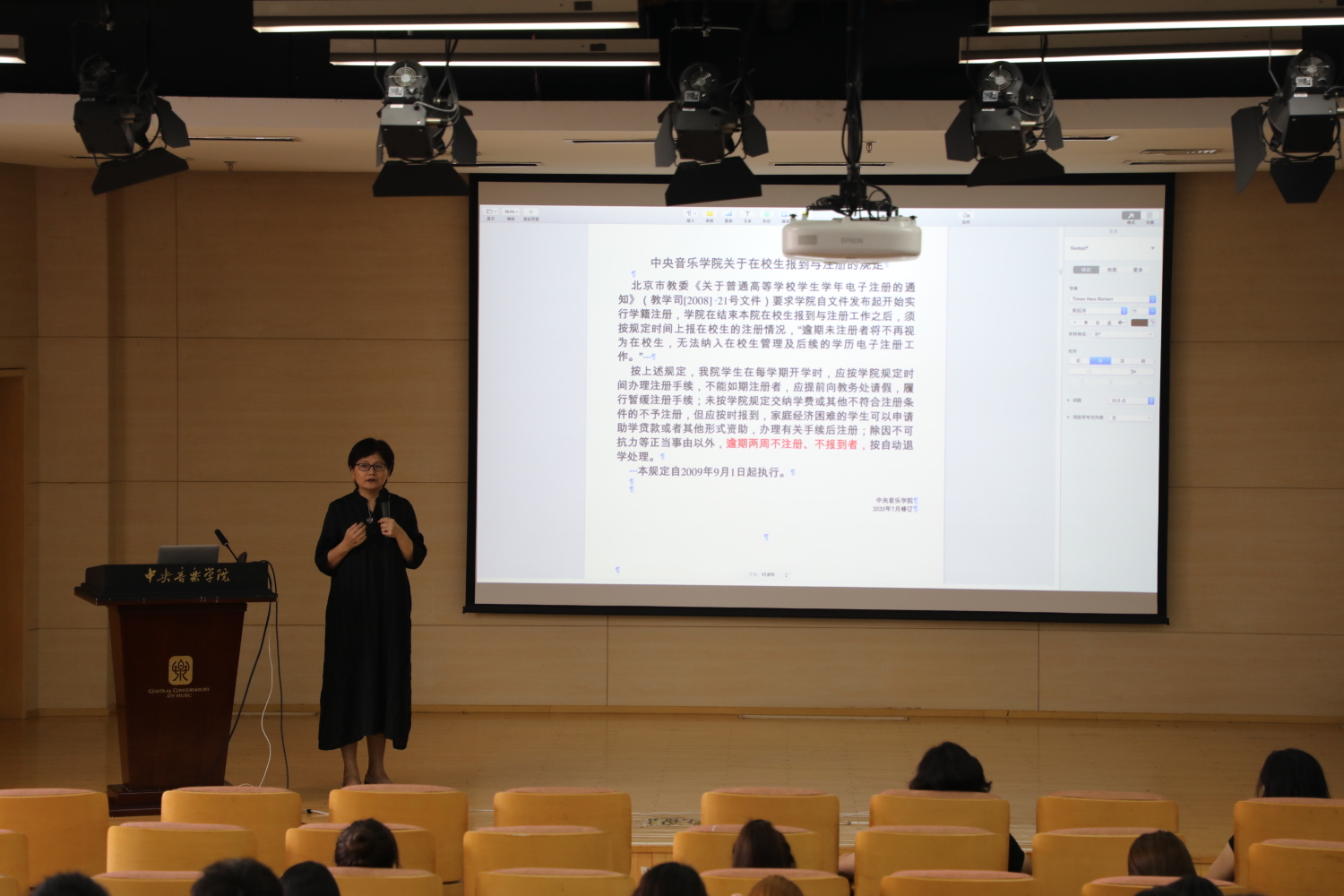 9月2日下午,音乐学教授、博导、教务处处长汤琼博士以“温校史 铭党恩”为题,音乐学系教授、人文学部副主任(主持工作)何宽钊老师以“涵养人文,学以成人”为题分别为学生讲述校史、讲解人文央音,旨在通过校史校情教育,挖掘、激活校本文化中的红色基因,激发学生爱国爱校情怀,赓续红色血脉。汤琼老师将央音在漫漫时光中逐渐发展的过程娓娓道来,自豪地讲述央音自从建校起,就深受党和国家的重视,在那个乐音匮乏的时代撑起了中国音乐的大梁;在发展的过程中,学校拥有着诸多知名的音乐家、教育家,培育出一代代的优秀人才;学校经历了学科设置与课程的改革,直到现在拥有十二个教学系部;同时不断扩大社会和国际影响力,用创作和表演服务人民。汤老师的动情讲述带领新生从另一个角度更深入、更亲切地了解到底蕴深厚的校史,让“央音”在新生脑海中鲜活起来,让人充满向往,也深感使命重大。何宽钊老师从央音人极高的母校认同感与团结奋进的精神讲起,介绍了如何通过各种知识的学习和涵养、对精神的塑造,来成就人的自我价值,实现知行统一。何老师讲到,beat365官网的人文通识教育,就是要造就书艺双修,具备高超的专业技能,广阔的文化视野,深厚的人文情怀,以及审思明辨的批判性思维和健全人格的新一代高精尖音乐艺术人才。校史教育、人文央音让初进校门的新生们了解央音光环下担负的责任,逐渐思考和明确自己未来应该做什么、能做什么和要做什么。