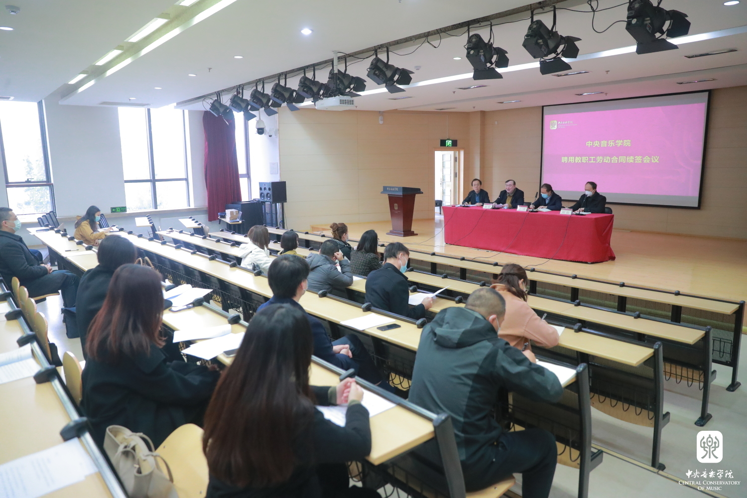 赵旻书记对获得续聘的教职工在各自岗位上做出的成绩给予了充分认可。他从牢记“为党育人,为国育才”的使命和如何做“四有”好老师等几个方面,对新时代高校教师提出了四点新的要求:一是要充分认识教师工作的重要性和特殊性。高校教师肩负着为社会直接输送人才的任务,广大教师们既要为党育人、为国育才,作为艺术院校,还要为培养德艺双馨的“人民艺术家”付出不懈努力。二是要认识教师在新时代文化建设、文化复兴中的新使命。党的二十大报告指出,中国式现代化是物质文明和精神文明相协调的现代化。教育具有基础性、先导性、全局性地位和作用,作为艺术院校,要在文化艺术上思考和解决问题,提升国民整体知识和文化素质、促进人的全面发展。三是要认识教师成长路径的新方向。作为“双一流”艺术类高校,不仅要依靠体制机制不断激发活力,每名教师还要不断激发自身的内在动力,不断提升修养认识。教育工作和教师岗位是神圣的,要增强底线意识,切实落实“立德树人”根本任务。四是要认识教师在发展过程中面临更严峻的竞争形势。高校教师要深入了解时代要求,紧跟时代步伐,引领时代发展。最后赵书记对续聘教师能够在未来的工作中取得新成绩、新进步提出了新的期望。