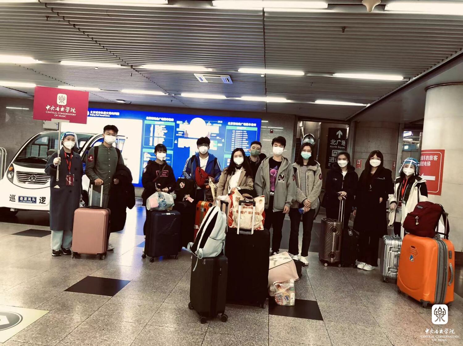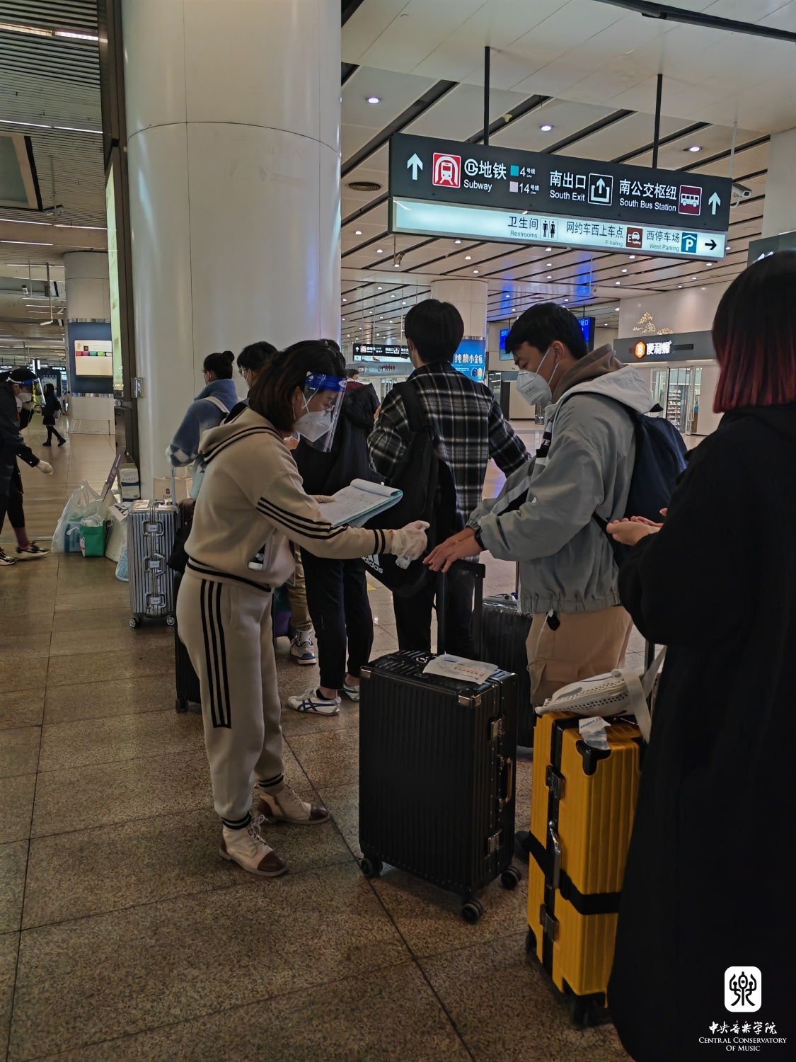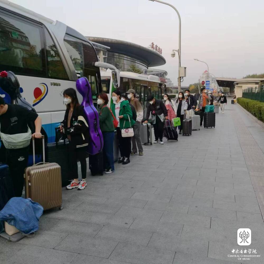 学校精心安排了由教职员工、青年教师组成的“央音志愿者服务队”,一早出发前往机场、车站。一辆辆宽敞干净的大巴车安静的等候,一个个印有“beat365官方网站”字样的接站牌闪耀着光芒。发自内心的微笑、充满耐心的引导,教职工志愿者们贴心的服务,让每一位到京的同学都感受到秋日里的温暖。