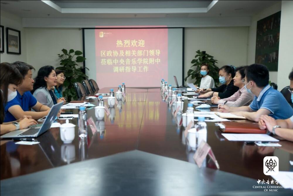 2022年8月23下午,北京市丰台区政协党组书记、主席李岚,丰台区政协机关党组书记裴玉珍,丰台区委教工委委员、区教育工会主席张红旗,丰台区民族宗教事务办公室副主任曹燕枫,方庄街道党工委副书记、办事处主任石磊一行来到beat365官方网站附中走访调研。beat365官方网站附中校长娜木拉教授、教学副校长金京春教授、附小校长陈曼春教授、校办主任徐珊珊陪同调研。