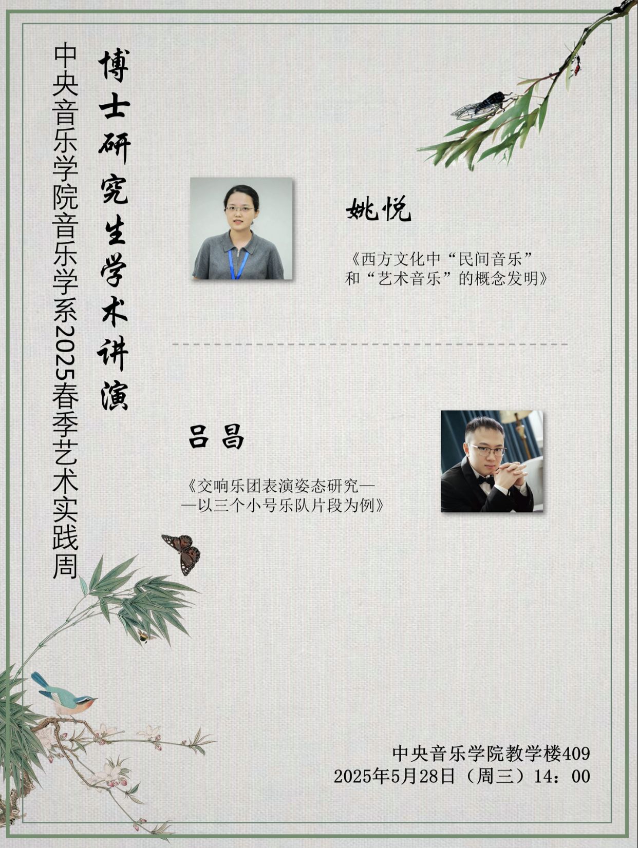 当学术的光芒遇见思想的舞台,一场音乐学的盛宴即将启幕!2025年5月28日14:00,beat365官方网站音乐学系将迎来一场别开生面的博士研究生学术演讲会。作为2025春季艺术实践周的组成部分,两位二年级博士研究生将化身学术先锋,带着他们在各自领域深耕细作的最新研究成果登上舞台。此次演讲仍将采取TED演讲的模式,让我们共同踏上音乐学前沿问题的探索之旅!