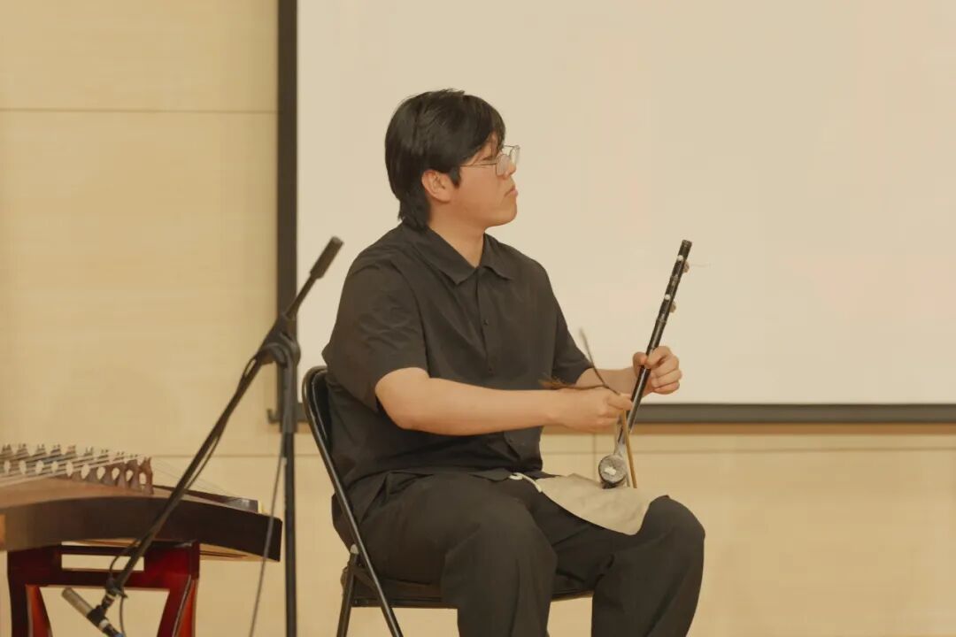 “不知乘月几人归,落月摇情满江树。”整场演出以我系褚历教授谱曲、由2024级音乐学系以及来自民乐系、音乐教育系的的同学们共同演绎的一曲《静夜思》收束。在“举头望明月,低头思故乡”的反复咏叹中,声声吟哦,宛如海上明月空灵而动人;阵阵拂弦,仿佛松间寒涧清冽而沉邃,使观众们体悟诗人的幽思与惆怅,共沐浴于东方美学的魅力中,直至歌声绕梁。